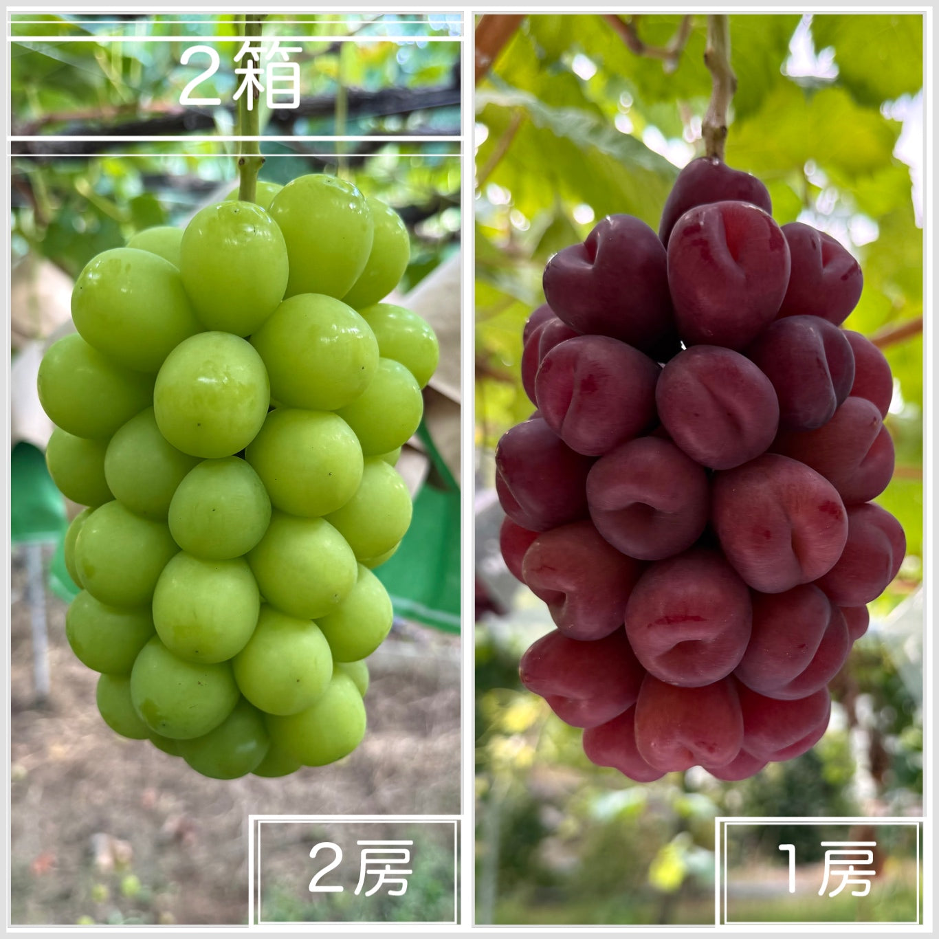 シャインマスカット2房、マイハート1房入り2箱セット(3.0kg以上)